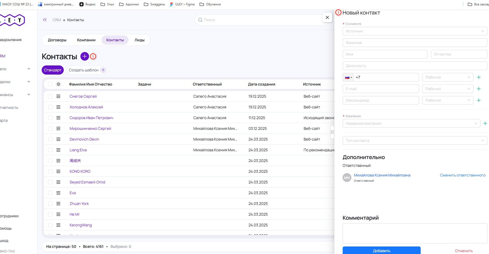 Заполните форму "Новый контакт"